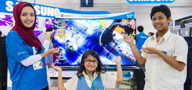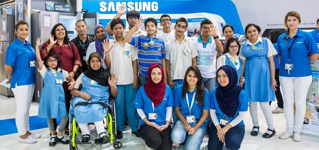 زار عدد من طلبة مركز النور لتدريب وتأهيل الأطفال ذوي الاحتياجات الخاصة، منصة شركة سامسونغ، على هامش مشاركتها بمعرض «جيتكس شوبر 2014».