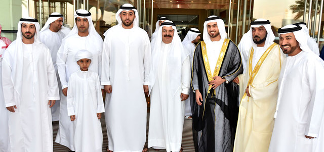 وحضر الحفل، الذي أقيم في مركز دبي التجاري العالمي عصر أمس، عدد من الشيوخ والوزراء وكبار ضباط القوات المسلحة والشرطة، وجمع من المسؤولين وأقارب العروسين.