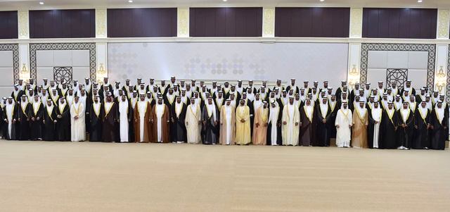 وهنأ أصحاب السموّ الشيوخ العرسان، مباركين لهم ولذويهم بهذه المناسبة السعيدة، متمنين لهم حياة أسرية هانئة.