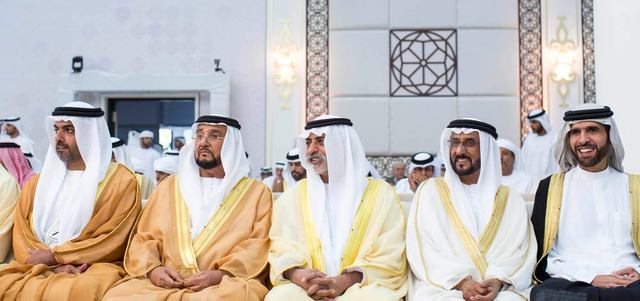 تحت رعاية صاحب السموّ الشيخ خليفة بن زايد آل نهيان، رئيس الدولة، شهد أصحاب السموّ أعضاء المجلس الأعلى للاتحاد حكام الإمارات وأولياء العهود ونواب الحكام، أمس، الاحتفال الشعبي الذي أقيم في «قصر المشرف» في أبوظبي، بمناسبة أفراح آل نهيان والقاسمي و110 عرسان من أبناء الوطن من مختلف إمارات الدولة.