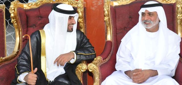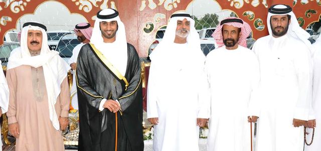 حضر الشيخ نهيان بن مبارك آل نهيان، وزير الثقافة والشباب وتنمية المجتمع، حفل الاستقبال الذي أقامه سلطان محمد مرخان المنصوري بمناسبة زفاف نجله مبارك إلى كريمة ناصر سعيد بن جديد المنصوري، في قاعة الوثبة بمدينة أبوظبي.