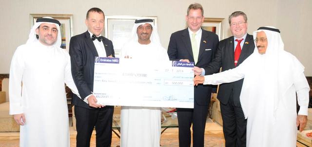 كما استقبل وفداً ألمانياً يمثل شركة «رينيري» للاستثمار، ويضم رئيس الشركة راشد فاروق، والرئيس التنفيذي رينير رينيري، والمدير العام الدكتور بيتر لانغيه، ودانيال دويردلمان. وهي شركة ألمانية تبرعت بمبلغ نصف مليون درهم لمصلحة المركز، ووعدت باستمرار هذا الدعم سنوياً. وأعرب سموّ الشيخ أحمد بن سعيد آل مكتوم عن بالغ تقديره لهذه الالتفاتة الإنسانية من هذه الشركة الألمانية. وقال: «هذا يؤكد أن المركز بات يحتل مكانة مرموقة، وأن الشركات العالمية ترى في دعمه ومؤازرته واجباً إنسانياً وأخلاقياً».