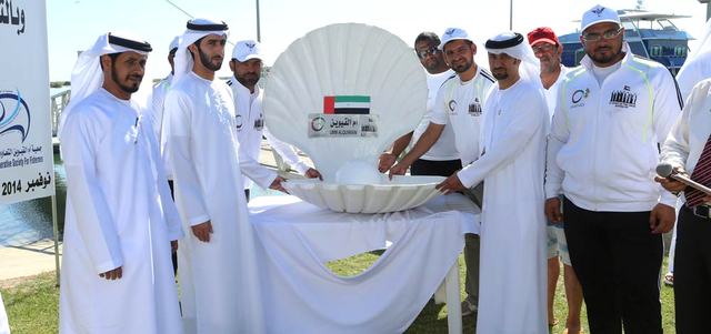 بدوره، التقى راشد بخيت المنصوري المدير التنفيذي لجمعية «كلنا الإمارات» بأعضاء الفريق المتطوع، وهم سبعة من الشباب الإماراتي المتحمس للعمل الوطني، ونقل لهم تحيات وشكر الشيخ ذياب بن محمد بن زايد، وتمنياته لهم بالتوفيق والنجاح في هذا العمل الوطني المشرف. وفي نهاية الحفل قام الشيخ ماجد بن سعود المعلا بتسليم لؤلؤة (الفجيرة) لفريق المبادرة، وتمنى لهم كل التوفيق والنجاح في مهمتهم، حيث توجه الفريق إلى عرض البحر لغرس اللؤلؤة الثالثة في أعماق بحر أم القيوين، التي تحمل علم الإمارات وشعار روح الاتحاد واسم (أم القيوين) وشعار جمعية «كلنا الإمارات».