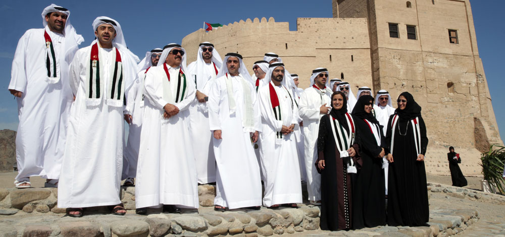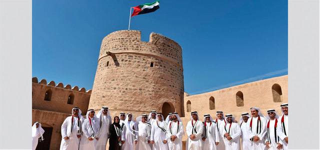 تداول مستخدمو وسائل التواصل الاجتماعي عدداً من الصور التي التقطت، على هامش اجتماع مجلس الوزراء الاستثنائي في «قلعة الفجيرة»، أمس، برئاسة صاحب السموّ الشيخ محمد بن راشد آل مكتوم، نائب رئيس الدولة رئيس مجلس الوزراء حاكم دبي، ظهر فيها أعضاء الطاقم الوزاري وهم يلتقطون الصور التذكارية في القلعة التاريخية التي يعود بناؤها إلى 500 عام، في أجواء احتفالية تتزامن مع الذكرى الـ43 لقيام الاتحاد.