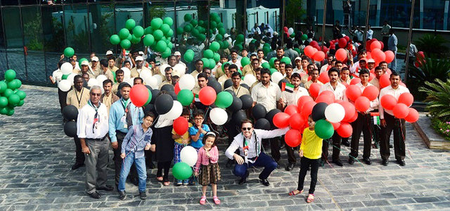 وتضمنت الاحتفالات إطلاق نحو 500 بالون بألوان علم الإمارات في الهواء من قبل أكثر من 100 موظف من شركة خدمة؛ بما في ذلك العمال والتقنيون والموظفون المتخصصون ورؤساء الأقسام، ورفع علم الإمارات عالياً في سماء أبوظبي على شكل بالون ضخم، إلى جانب عدد من الأنشطة الترفيهية ابتهاجاً بالمناسبة الوطنية الغالية. من جهتهم، أعرب العاملون في الشركة عن سعادتهم بالمناسبة الغالية على قلوب الذين يقيمون على أرض الإمارات، مشيرين إلى أن اليوم الوطني لدولة الإمارات يعد عيداً للجميع، ويحمل الكثير من المعاني والقيم والذكريات الغالية.