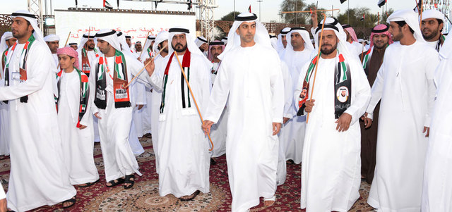 كما اشتمل برنامج الحفل على لوحات تراثية كالحربية واليولة والأغاني التي جسدت روح المناسبة الوطنية، إلى جانب تقديم قصيدة العازي من الفنون التراثية التي تعبر عن فخر واعتزاز الإماراتيين بالانتماء إلى الوطن، والولاء للقيادة الرشيدة، وشارك في إنشادها 400 شاب من أبناء القبيلة.