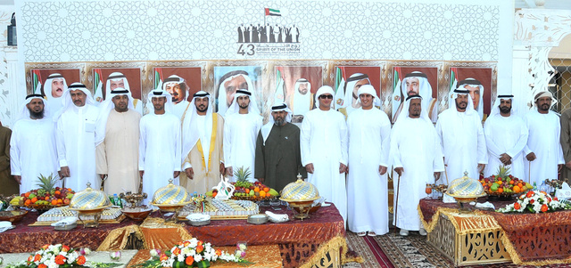 حضر الشيخ محمد بن سلطان بن خليفة بن زايد آل نهيان، الحفل الذي أقامه سعيد حارب حميد العفاري، بمناسبة زفاف نجله حمود إلى كريمة هلال غريب الجنيبي.