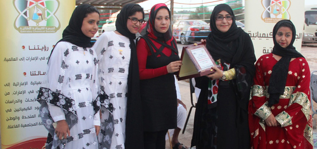 نظّمت الجمعية الكيميائية الإماراتية مهرجاناً بمناسبة ليوم الوطني الـ43 بمقرها، وحضر الاحتفال الكيميائية موزة سيف الشامسي، عضوة المجلس الأعلى لاتحاد الكيميائيين العرب رئيس الجمعية الكيميائية الإماراتية، وإبراهيم حسن البغام نائب مدير المنطقة التعليمية، وبمشاركة الجهات الحكومية، وموسيقى الشرطة، وجمعية رأس الخيمة للفن الشعبي، كما تضمن الاحتفال «أوبريت» لمدرسة الريادة، وفقرة لمدرسة حصة بنت صقر في حب الوطن.