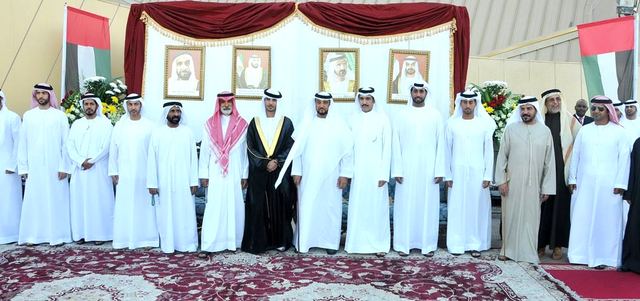 حضر الشيخ خليفة بن حمدان بن محمد آل نهيان، والعميد الركن بحري طيار الشيخ سعيد بن حمدان بن محمد آل نهيان، نائب قائد القوات البحرية، والشيخ محمد بن خليفة بن حمدان آل نهيان، والشيخ محمد بن بطي آل حامد، والشيخ فيصل بن سلطان القاسمي، والشيخ محمد بن نهيان آل نهيان، والشيخ زايد بن حمد بن حمدان آل نهيان، والشيخ مبارك بن نهيان آل نهيان، والشيخ زايد بن خليفة بن سلطان آل نهيان، والشيخ سيف بن محمد بن بطي آل حامد، الحفل الذي أقامه زايد بن صقر الفلاحي بمناسبة زفاف نجله سلطان إلى كريمة المرحوم حمدان بن صقر الفلاحي.
