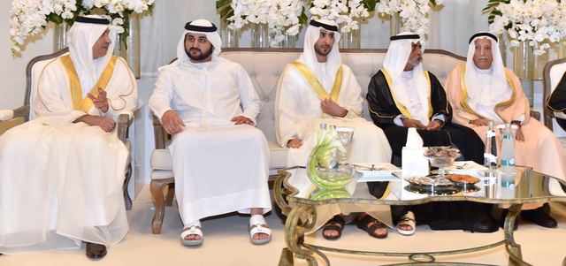 حضر سموّ الشيخ حمدان بن راشد آل مكتوم، نائب حاكم دبي وزير المالية، وسموّ الشيخ مكتوم بن محمد بن راشد آل مكتوم، نائب حاكم دبي، والشيخ نهيان بن مبارك آل نهيان، وزير الثقافة والشباب وتنمية المجتمع، حفل الاستقبال الذي أقامه خالد محمد الكمدة لمناسبة زفاف نجله عبدالله إلى كريمة عبدالله يوسف البدور.