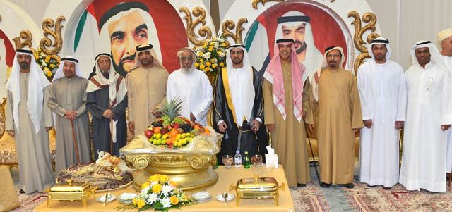 حضر الحفل عدد شيوخ ووجهاء وأعيان القبائل، وعدد من الوزراء وكبار الشخصيات والمسؤولين، وأعيان قبيلتي الظاهري والعامري، وضيوف من سلطنة عُمان الشقيق وكبار ضباط الشرطة والقوات المسلحة، وحشد كبير من المدعوين الأهل والأصدقاء. وتخللت الحفل عروض فنية متنوّعة لفرقة الفنون الشعبية الإماراتية.