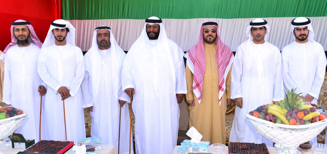 حضر الشيخ سلطان بن سعيد بن محمد آل نهيان، الحفل الذي أقامه محمد بن عديل الشامسي، بمنطقة الشعيبة بمدينة العين، بمناسبة زفاف نجله حامد إلى كريمة عمر ثامر الظريف الشامسي.