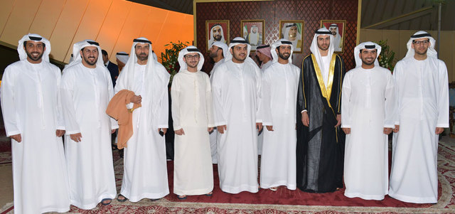 حضر الشيخ سرور بن محمد آل نهيان، والشيخ نهيان بن مبارك آل نهيان، وزير الثقافة والشباب وتنمية المجتمع، في نادي ضباط القوات المسلحة بأبوظبي، الحفل الذي أقامه رجل الأعمال حسن عبدالله الحمادي، بمناسبة زفاف نجله عبدالله إلى كريمة المستشار داوود سليمان الحمادي.