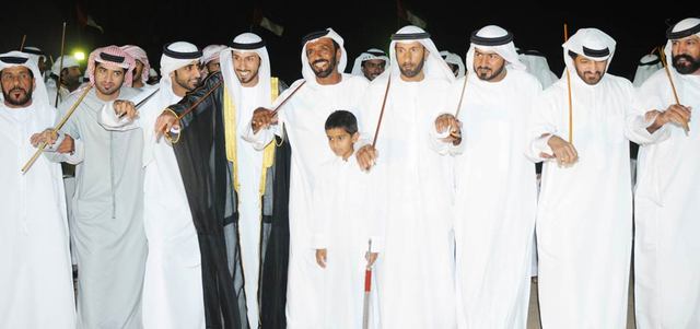 وشارك في الحفل عدد من فرق الحربية التي أدت لوحات من التراث الاماراتي الأصيل.