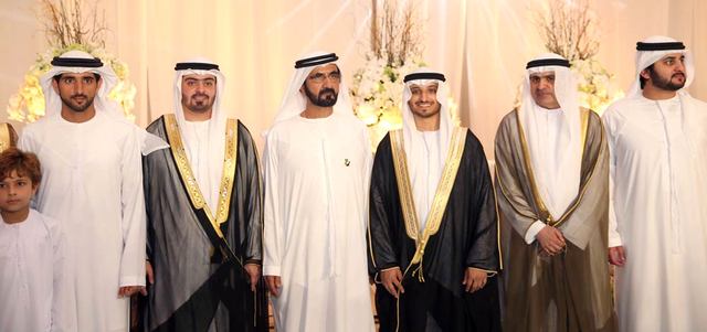 وحضر الحفل، الذي أقيم في فندق غراند حياة في دبي مساء أمس، عدد من أعيان البلاد والوزراء وكبار المسؤولين في الدولة من مدنيين وعسكريين وأقارب العريسين.