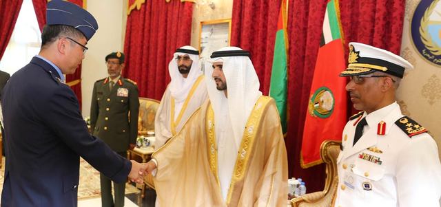 ورفع سموّه أسمى آيات الولاء والتقدير إلى صاحب السموّ الشيخ خليفة بن زايد آل نهيان، رئيس الدولة القائد الأعلى للقوات المسلحة، على دعمه اللامحدود وعطاءاته الإنسانية والمعنوية لقواتنا المسلحة الباسلة، التي باتت تضاهي أعرق الجيوش تسليحاً وعلوماً وكفاءة وإخلاصاً للوطن وأهله.