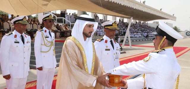وأضاف أنه «على خُطى السلف تستمر مسيرة العطاء لخير خلف صاحب السموّ الشيخ خليفة بن زايد آل نهيان، رئيس الدولة القائد الأعلى للقوات المسلحة، ويشرفنا أن نرفع لمقامه أسمى آيات التهاني والتبريكات بمناسبة تخرّج هذا الفوج من رجال القوات البحرية، وإلى أخيه صاحب السموّ الشيخ محمد بن راشد آل مكتوم، نائب رئيس الدولة رئيس مجلس الوزراء حاكم دبي، والشكر موصول لصاحب السموّ الشيخ محمد بن زايد آل نهيان، ولي عهد أبوظبي نائب القائد الأعلى للقوات المسلحة، مباركين لخريجينا هذا الاستحقاق ولذويهم الكرام».