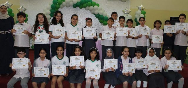 كما تم تكريم المتفوقين في الامتحانات الدولية AESR 2014 في مواد الرياضيات والعلوم واللغة الإنجليزية وهما: حسن عادل عبدالأمير، وايهان عيد.