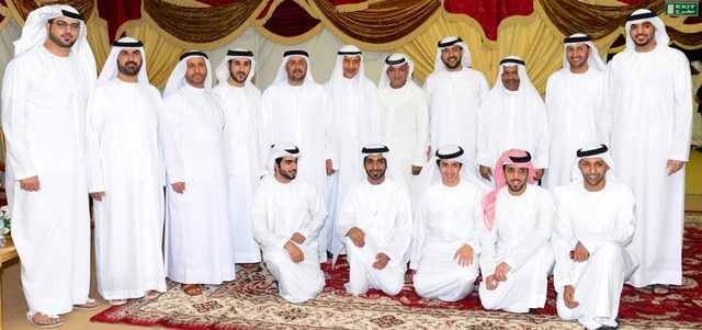 حضر الشيخ صقر بن راشد القاسمي، والشيخ خالد بن صقر بن راشد القاسمي، والشيخ نجيب بن صقر بن راشد القاسمي، حفل الاستقبال الذي أقامه الشيخ ناصر بن سلطان بن ماجد القاسمي، بمناسبة زفافه إلى كريمة الشيخ خالد بن صقر بن راشد القاسمي.