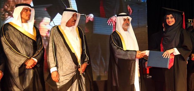 وسلم الشيخ نهيان بن مبارك آل نهيان، وزير الثقافة والشباب وتنمية المجتمع، يرافقه الشيخ الدكتور فيصل بن خالد القاسمي، رئيس مجلس إدارة المدرسة، والشيخ طارق بن فيصل القاسمي، الخريجين والخريجات شهادات التخرج.