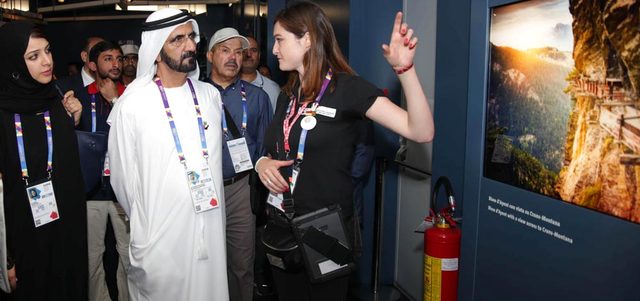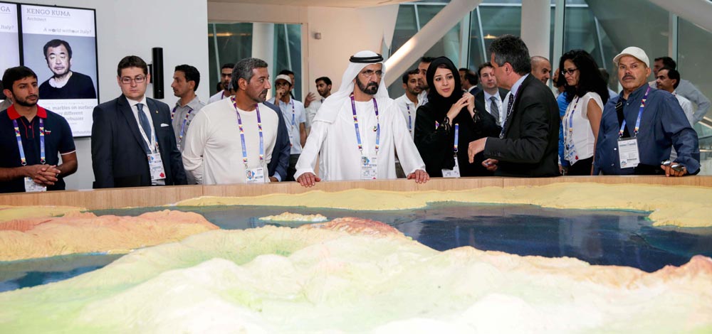 أعرب صاحب السمو الشيخ محمد بن راشد آل مكتوم، نائب رئيس الدولة رئيس مجلس الوزراء حاكم دبي، عن ارتياحه لزيارة «إكسبو ميلانو 2015»، واطلاعه على أجنحة الدول المشاركة، مشيداً سموه بفكرة شعار المعرض «الغذاء طاقة للحياة»، باعتبار أن مصادر الغذاء والأراضي الزراعية حول العالم معرضة للتدمير أمام زحف الحضارة، والمدنية التي تقضم مساحات واسعة من الأراضي الزراعية لمصلحة البناء، وإقامة المدن الإسكانية والصناعية وغيرها.