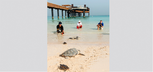 «جميرا» تحرر 45 سلحفاة مهدّدة بالانقراض