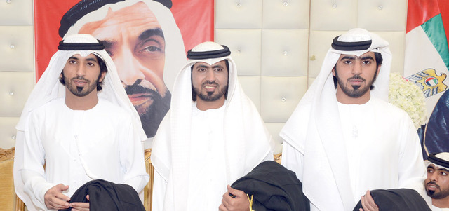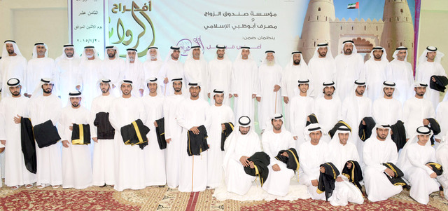 شهد الشيخ سعيد بن طحنون آل نهيان، واللواء الركن طيار الشيخ أحمد بن طحنون آل نهيان، رئيس هيئة الخدمة الوطنية والاحتياطية، والشيخ محمد بن سرور آل نهيان، الحفل الذي أقيم بمناسبة العرس الجماعي الـ18 من أبناء قبيلة الرواشد، بمشاركة 44 شاباً وفتاة من أبناء القبيلة، وذلك برعاية ودعم مؤسسة صندوق الزواج، ومصرف أبوظبي الإسلامي.