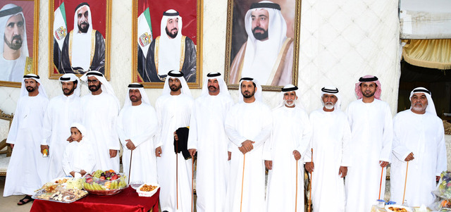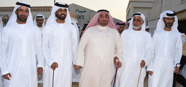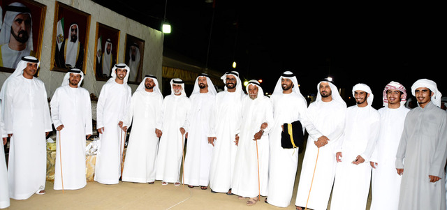 حضرالشيخ محمد بن عبدالعزيز النعيمي، وسلطان بن علي الخاطري، حفل الاستقبال الذي أقامته عائلة علي بن غدير الكتبي، بمناسبة زفاف شقيقهم عبدالعزيز إلى كريمة المرحوم مهير بن محيان الكتبي.