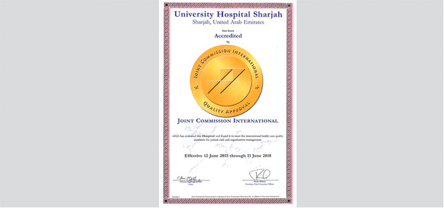 حصل مستشفى الجامعة بالشارقة على شهادة الاعتماد من اللجنة الدولية المشتركة لاعتماد المستشفيات JCI، ليصنّف مؤسسة عالمية في مجال تقديم الرعاية الصحية النوعية للمرضى.