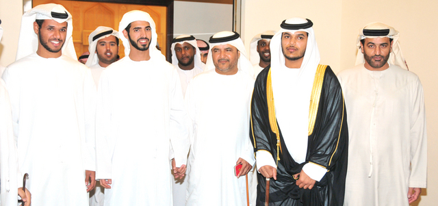 حضر الشيخ سلطان بن حمدان بن محمد آل نهيان، حفل زفاف منصور حسن عبدالرحمن الحمادي إلى كريمة محمد عبدالله محمد الجاسمي.