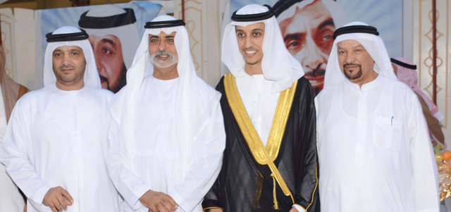 كما حضر الحفل، الذي أقيم في قاعة الاحتفالات بمركز المؤتمرات في مدينة العين، الشيخ شخبوط بن نهيان بن مبارك آل نهيان، وأعيان ووجهاء القبائل، وعدد من المسؤولين وكبار الشخصيات، وضباط القوات المسلحة والشرطة، ولفيف من الأهل والاصدقاء. وتخللت الحفل عروض فنية متنوّعة من وحي التراث الإماراتي.