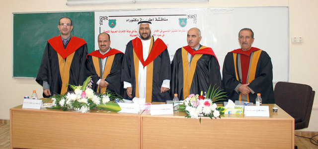 نال الباحث الدكتور عبدالله سلطان بن حارب، درجة الدكتوراه في الإدارة التربوية، من خلال أطروحته التي تناولت معايير مقترحة للتميّز المؤسسي في الإدارة الجامعية الحكومية في دولة الامارات، من الجامعة الأردنية بالمملكة الأردنية الهاشمية، وتكونت لجنة المناقشة من: الأستاذ الدكتور صالح ناصر عليمات رئيساً ومشرفاً، والأستاذ الدكتور محمد أمين القضاة عضواً، والدكتور خالد السرحان عضواً، والدكتور محمد القداح عضواً خارجياً.