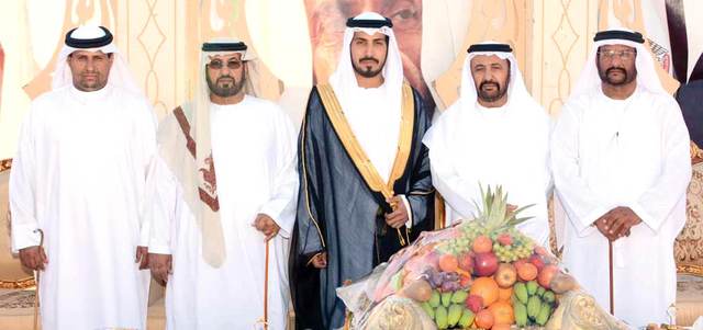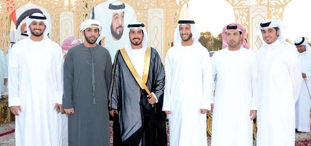 حضر الشيخ زايد بن طحنون بن محمد آل نهيان، الحفل الذي أقامه مفرح علي محمد الأحبابي، بمناسبة زفاف نجله جرمان إلى كريمة قبلان مسفر محمد الأحبابي.
