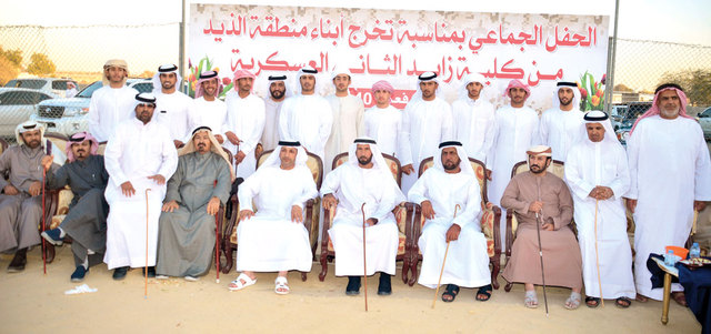 أقام أبناء منطقة الذيد حفلاً جماعياً بمناسبة تخريج 12 ضابطاً في كلية زايد الثاني العسكرية من الدفعة الـ40.