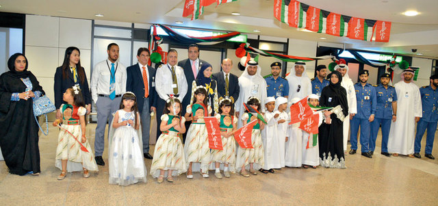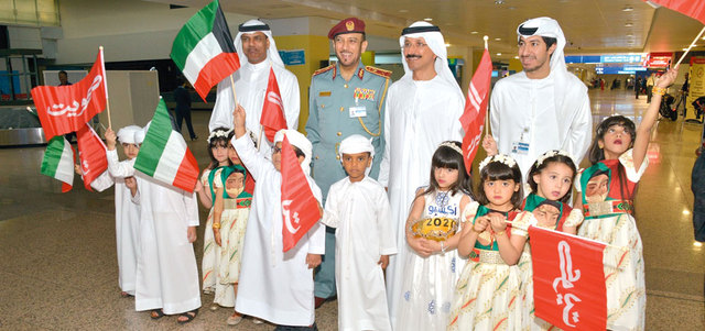 واستقبلت إدارة عمليات المسافرين في مبنى المطار (1) مسافرين قادمين من دولة الكويت على متن أول رحلة تحط رحالها على أرض مبنى المطار (1) صباح أمس، عبر الخطوط الجوية الكويتية، بالورود والهدايا وأعلام دولة الكويت القديمة والحديثة ومشبك عليه علم الكويت، إضافة إلى توزيع حلويات كويتية، تم استيرادها من الكويت لهذه المناسبة خصيصاً، بمشاركة أطفال روضة البراءة في دبي، بالزي الإماراتي، حيث أضفى الأطفال جواً من البهجة والسرور على المسافرين الكويتيين.
