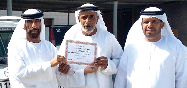 بالإنابة عن أهالي المنيعي، قدم محمد علي الهنجري، شهادة شكر وتقدير لخليفة أحمد بن حميد الدهماني، مشرف المناطق النائية في دائرة الخدمات والاشغال برأس الخيمة، نظيراً لجهوده في متابعة إزالة مخلفات الأمطار الأخيرة على منطقة المنيعي وضواحيها.