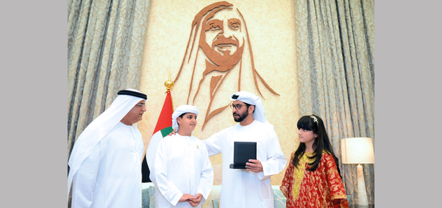 واستقبل سمو الشيخ حمدان بن زايد آل نهيان، المخترع الإماراتي الصغير، أديب سليمان البلوشي، وأخته دانة، ووالدهما بمناسبة الإنجازات الدولية التي حققاها أخيراً، مقارنة بصغر أعمارهما حيث يبلغ أديب 12 سنة، ودانة 10 سنوات.