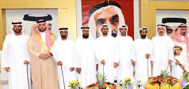 حضر الشيخ سرور بن محمد آل نهيان، حفل الاستقبال الذي أقامته عائلة المرحوم هضبان بن مبارك العامري، بمناسبة زفاف نجلها مبارك إلى كريمة علي بن عزيز الشريفي.