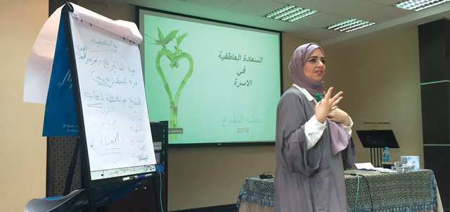 ضمن برامج مبادرة السعادة التي اعتمدتها جمعية النهضة النسائية بدبي لبيئة عمل سعيدة منتجة، والمنطلقة من رؤية حكومة دبي وقيادتها الرشيدة، قدمت الجمعية ممثلة بمركز النهضة للاستشارات والتدريب، أمس، دورة تدريبية بعنوان «السعادة العاطفية» قدمتها عائشة المطوع، المدربة الدولية المعتمدة في القيادات والمستشار الأُسَري في المجلس الأعلى للأسرة بمراكز التنمية الأسرية.وتناولت فيها عدداً من الأساليب للوصول إلى العلاقة البيولوجية والعاطفية المنسجمة والصحيحة بين الزوجين داخل الأسرة كمكوِّن أساسي لمنظومة دوائر السعادة في المجتمع.