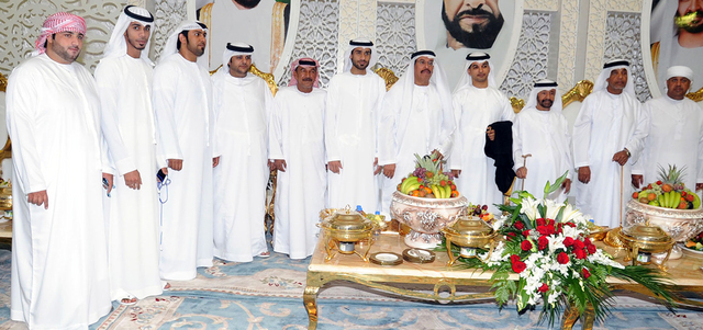 أقام جمعة نخيرة عبيد الظاهري حفل استقبال، في صالة هيلي للأفراح، بمناسبة زفاف نجله عبدالله إلى كريمة سعيد مبارك الشامسي. وحضر الحفل عدد من الشيوخ والوزراء وكبار الشخصيات، وأعيان قبيلة الظاهري، ولفيف من الأهل والأصدقاء. وتخللت الحفل العروض والأهازيج الشعبية والتراثية.