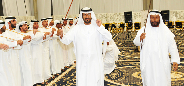 وتخللت الحفل عروض فنية تراثية لفرقة الفنون الشعبية الإماراتية.