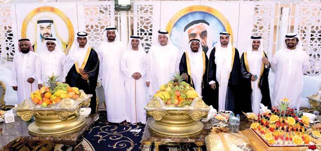 كما حضر الحفل، الذي أقيم بقاعة الاحتفالات بمنطقة اليحر في مدينة العين، عدد من وجهاء وأعيان القبائل، وكبار الشخصيات والمسؤولين والضباط، وحشد كبير من المدعوين، والأهل والأصدقاء.