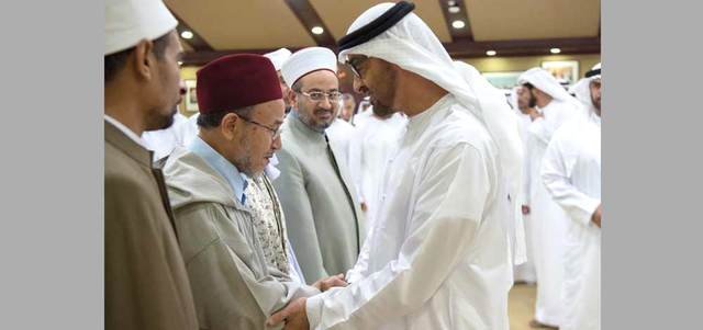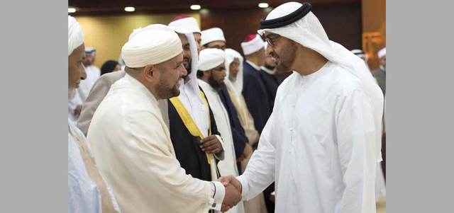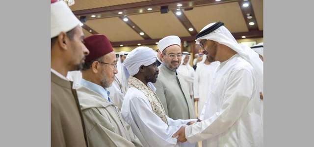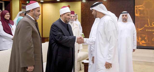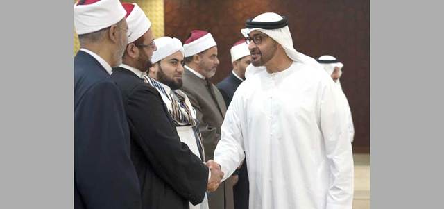 محمد بن زايد يستقبل العلماء ضيوف رئيس الدولة