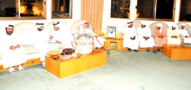 حضر الشيخ سعيد بن طحنون بن محمد آل نهيان، والشيخ الدكتور الطيار منصور بن طحنون بن محمد آل نهيان، مأدبة العشاء، التي أقامها حمد سلطان الدرمكي، تكريماً لهما، وذلك بمنزله في منطقة المسعودي بمدينة العين.