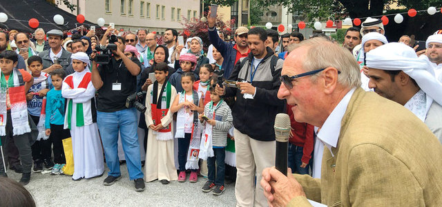 بلد التسامح قال محمد بن جمعة العتيبة إن المبادرة عكست التقارب والتآلف بين الشعبين الإماراتي والنمساوي، حيث أقيمت فعالية اليوم الاماراتي هذا العام تحت شعار «معاً من أجل السلام»، بهدف إظهار ما يتمتع به أبناء الوطن من تسامح وتعايش في سلام مع الآخر، والذي يعكسه وجود أكثر من 200 جنسية على أرض الدولة، مؤكداً أن مثل هذه المبادرات تحقق التقارب بين أبناء الإمارات وأصدقائهم النمساويين، وأدت الى اهتمام أبناء الشعب النمساوي بالعادات والتقاليد الإماراتية. |