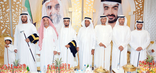 وحضر الحفل، الذي أقيم في قاعة الاحتفالات بمنطقة زاخر في مدينة العين، أعيان القبائل، وعدد من المسؤولين وكبار الشخصيات، وجمع من الأهل والأصدقاء والمدعوين.