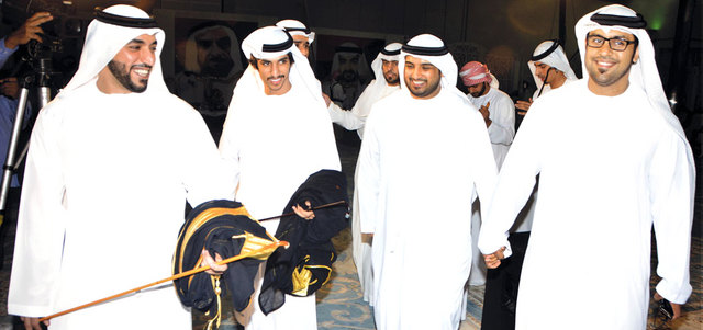 وتخللت الحفل مشاركة فرق شعبية بعروض من التراث الإماراتي ابتهاجاً بالمناسبة.