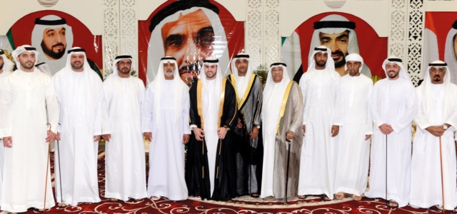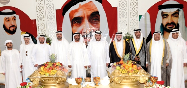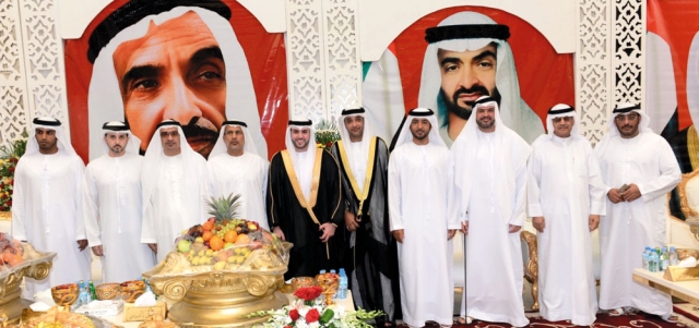 حضر الشيخ نهيان بن مبارك آل نهيان، وزير الثقافة وتنمية المعرفة، والشيخ سعيد بن طحنون بن محمد آل نهيان، حفل زفاف مبارك محمود أحمد الشلبي الى كريمة محمد علي الذوادي.