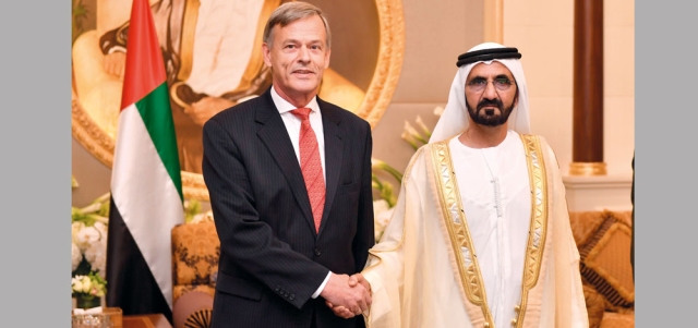 وقد رحّب صاحب السموّ الشيخ محمد بن راشد آل مكتوم، بالسفراء الجدد بعد أن صافحهم، مؤكداً لهم أن «دولة الإمارات قيادة وحكومة وشعباً تربطها علاقات طيبة مع جميع الدول، وتؤكد على توظيف هذه العلاقات، لما فيه تحقيق المصالح المشتركة لشعبها وشعوب هذه الدول الشقيقة والصديقة، من أجل خدمة السلام ونشر ثقافة التعايش والتسامح والمساواة، والتركيز على التنمية وإسعاد البشرية».