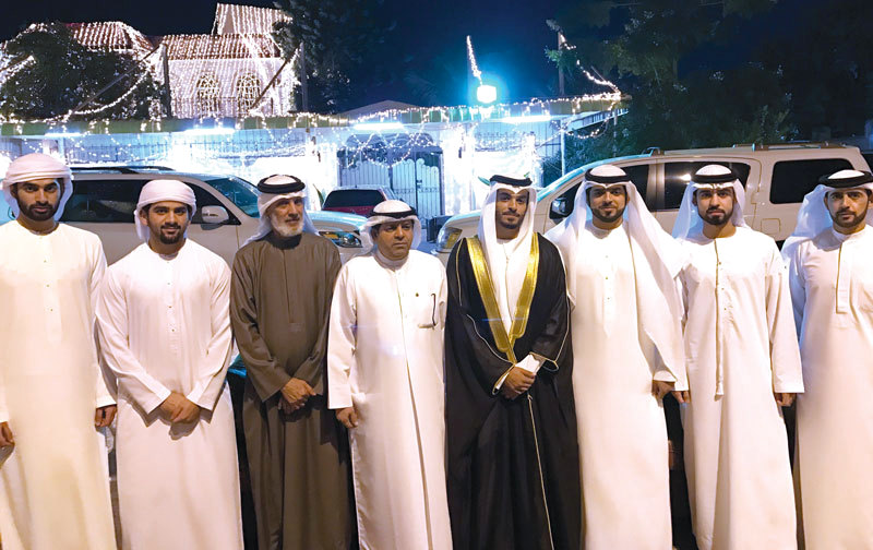 أقام محمد خميس الحمودي حفلاً بمناسبة زفاف نجله عبدالرحمن إلى كريمة راشد المحرزي، بمنزل العريس في الفجيرة.